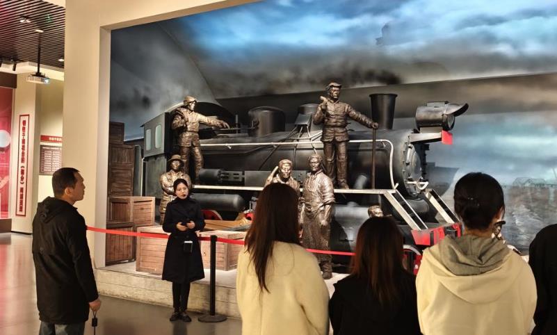 作为江北新区重要的红色文化传播阵地,红色广场以“红色展陈+实景体验”的方式,系统呈现了江北地区在中国共产党历史与中国革命史上的光辉篇章。跟随着讲解员的脚步,同志们依次走过火车头广场、初心广场与展陈馆,在实景复原与历史文物中触摸那段波澜壮阔的革命岁月。