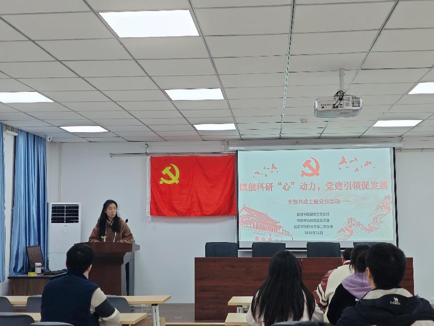 为深入贯彻落实习近平新时代中国特色社会主义思想,全面响应党的二十大关于“全面从严治党”和“加快实现高水平科技自立自强”的战略部署,紧扣教育、科技、人才一体化发展的时代要求,同时进一步打破学科壁垒、促进优势互补,聚焦科研创新中的思想引领与内生动力培育,数理科学学院与能源科学与工程学院研究生党支部联合学院“心语昕约”心理工作室于2025年11月21日在笃行楼316会议室联合开展了以“赋能科研‘心’动力,党建引领促发展”为主题的党日活动,通过党建联合为科研工作注入“心”能量、引领新方向。