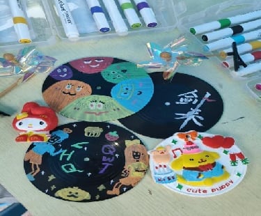 活动现场洋溢着轻松而富有创意的氛围。同学们以黑胶唱片为画布,用丙烯颜料将内心情感与想象挥洒于圆盘之上。作品或色彩明快、线条奔放,传递青春的活力与喜悦;或笔触细腻、色调柔和,流露沉静与思考。在涂鸦过程中,同学们从繁重学业中抽离,沉浸在艺术创作带来的宁静与愉悦之中。创作结束后,同学们互相欣赏作品、分享灵感与情感故事,在交流中加深了彼此的理解与共情,增强了集体凝聚力。