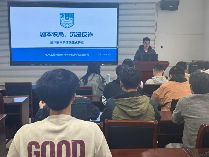 为增强同学们防范电信网络诈骗的意识,提升识诈、防诈能力,4月8日下午,电气工程与控制科学学院研究生会在崇德楼D416举办“剧本识局,沉浸反诈”主题沉浸式剧本杀活动。本次活动将反诈宣传与剧本推演、角色互动相结合,引导同学们在推理中学习反诈知识、识破诈骗套路。