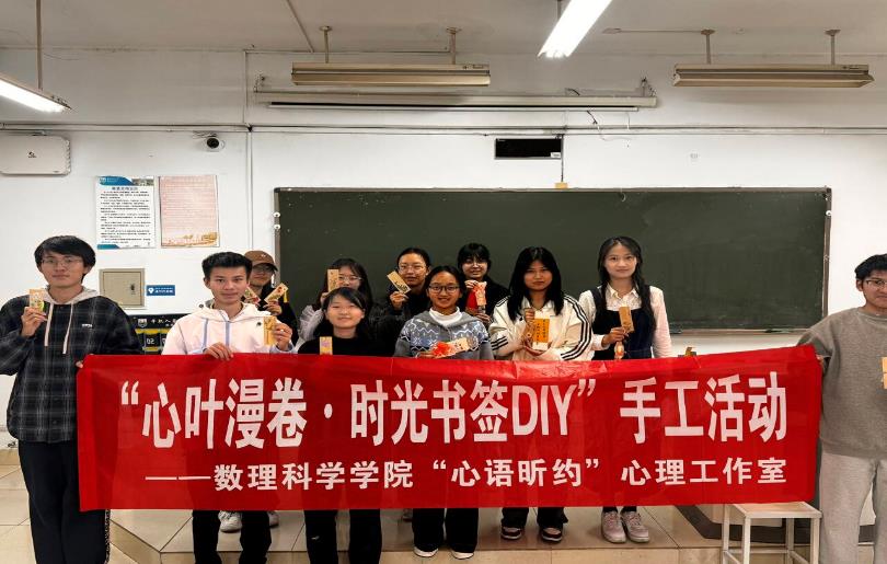 为助力学生舒缓压力、表达情绪,数理科学学院“心语昕约”心理工作室联合院研究生会及研究生党支部于2025年11月5日在同和楼206举办“心叶漫卷·时光书签DIY心理体验活动”,吸引众多学子踊跃参与。