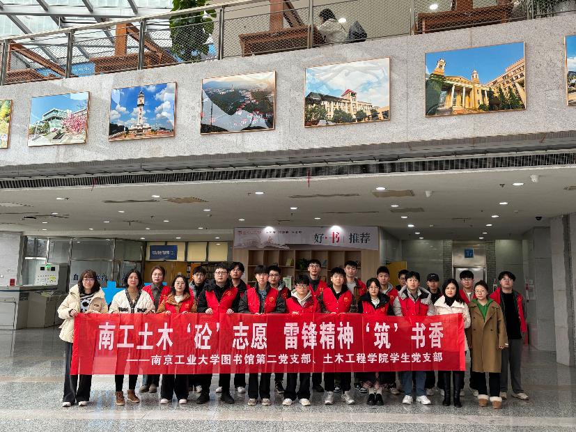 为弘扬雷锋精神,践行党员初心使命,3月5日雷锋日当天,南京工业大学土木工程学院(本、研)学生党支部联合校图书馆第二党支部,在逸夫图书馆开展“传承雷锋精神、共建书香校园”志愿服务活动。学院辅导员(兼任本科生、研究生党支部书记)带领20余名学生党员、2023级部分本科生入党积极分子同学积极参与,以实际行动服务师生、美化校园环境。