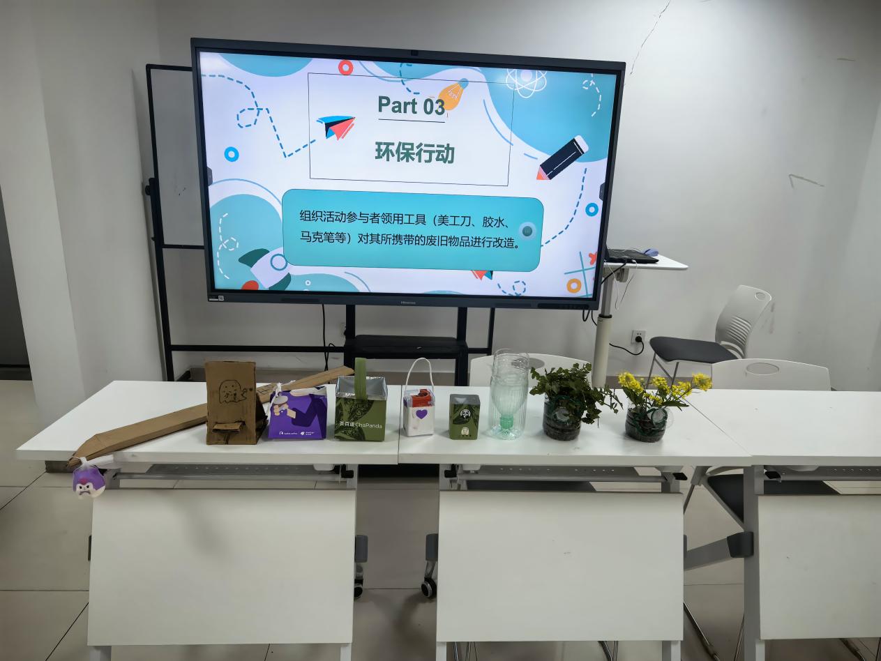活动开始,院研会执行主席朱阳同学向大家发起“学习雷锋精神”的倡议,在认真观看了雷锋同志的纪录片后,大家纷纷表示,传承雷锋同志的优良美德不能仅是喊口号,更要践行到学习生活中。接着,朱阳向大家宣传保护环境、节约资源的重要性,引导同学们全身心投入到废旧纸盒和空瓶的改造中,真正实现变废为宝,践行环保意识。最后,大家一起展示自己的作品,并共同在横幅上签名,为环保代言,争做环保领头人。
